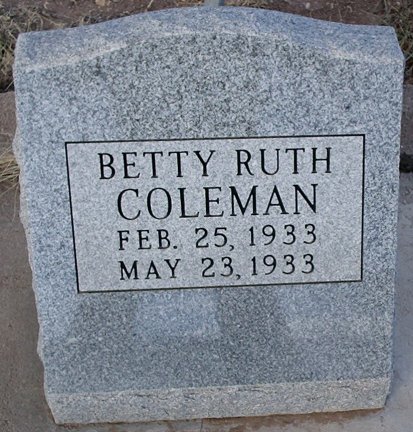 Coleman, Betty Ruth born 2/25/1933 died 5/23/1933