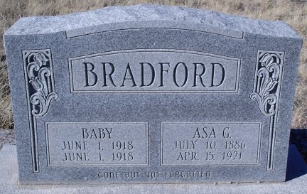 Bradford, Asa G. born 7-10-1886 died 4/15/1921