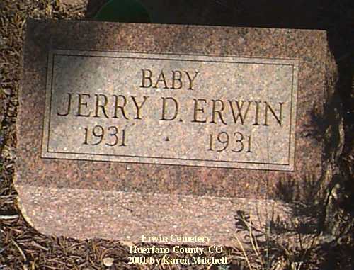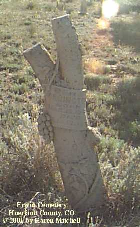 Erwin, son of Thomas J and Sarah Lavina Garren Erwin (first burial in this cemetery)