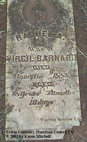 Barnard, Rachel A. born --- died 6-16-1886 48y 3m 10d, Wife of Virgil Barnard