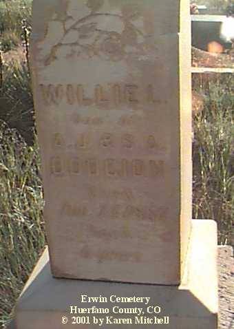 Dodgion, Willie L. born --- died 1-14-1880 Son of A.J. and S.A. Dodgion, 6 years same stone as Charlie