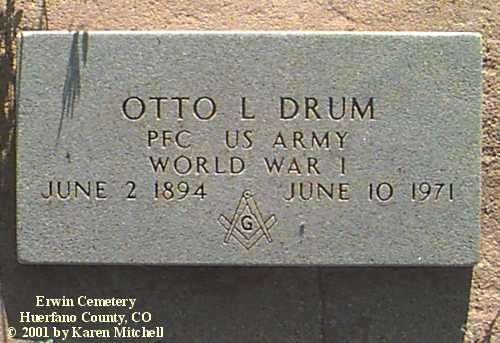 Drum, Otto L. born 6-2-1894 died 06-10-1971 PFC US Army WWI