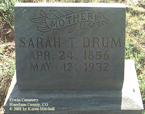 Drum, Sarah T. born 4-24-1856 died 05-17-1932