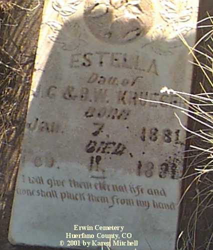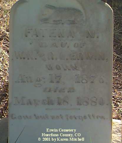 Erwin, Fatena N. born 8-17-1876 died 3-18-1880 Daughter of W.N. and R.L. Erwin