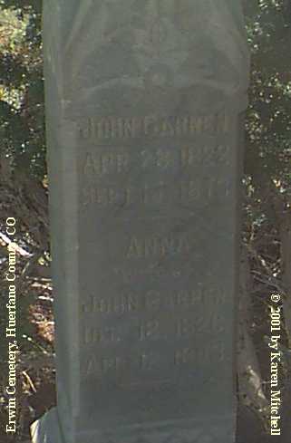 Garren, Anna born 12-18-1826 died 4-12-1893 Wife of John Garren