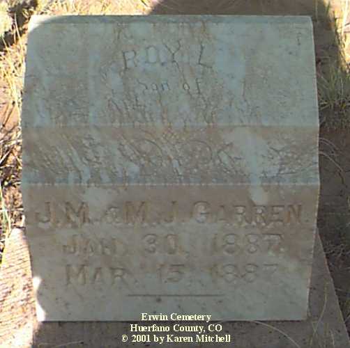 Garren, Roy L. born 1-30-1887 died 3-15-1887 Son of J.M. and M.J. Garren
