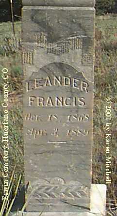 Kerby, Leander Francis born 10-18-1868 died 4-3-1889
