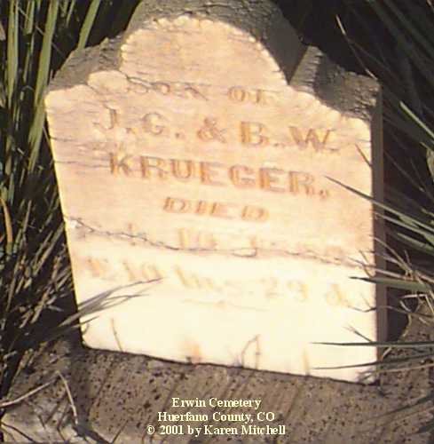 Krueger, Julius E.born --- died 2-16-1880 10m 29d, Son of J.G. and B.W. Krueger back of stone