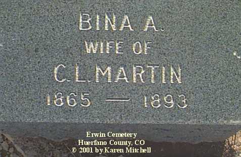 Martin, Bina A. born 1865 died 1893 Wife of C.L. Martin
