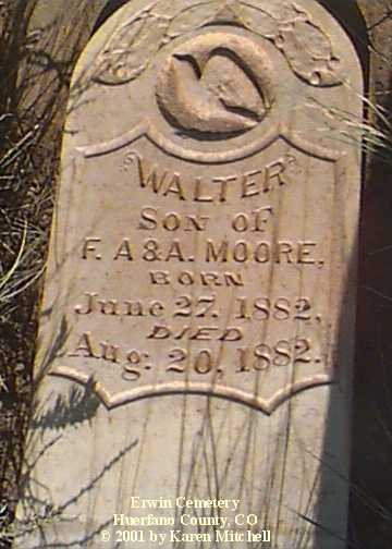 Moore, Walter born 6-27-1882 died 8-20-1882 Son of F.A. and A. Moore