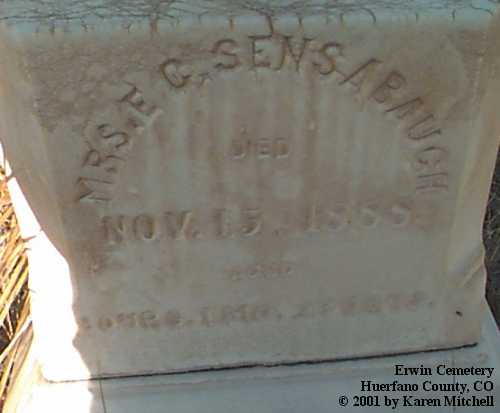 Sensabaugh Mrs. E.C. born --- died 11-15-1888 80y 1m 23d