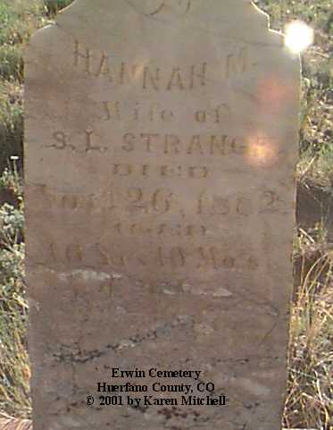 Strange, Hannah M. born --- died 11-26-1882 Wife of S.L. Strange, 46y 10m