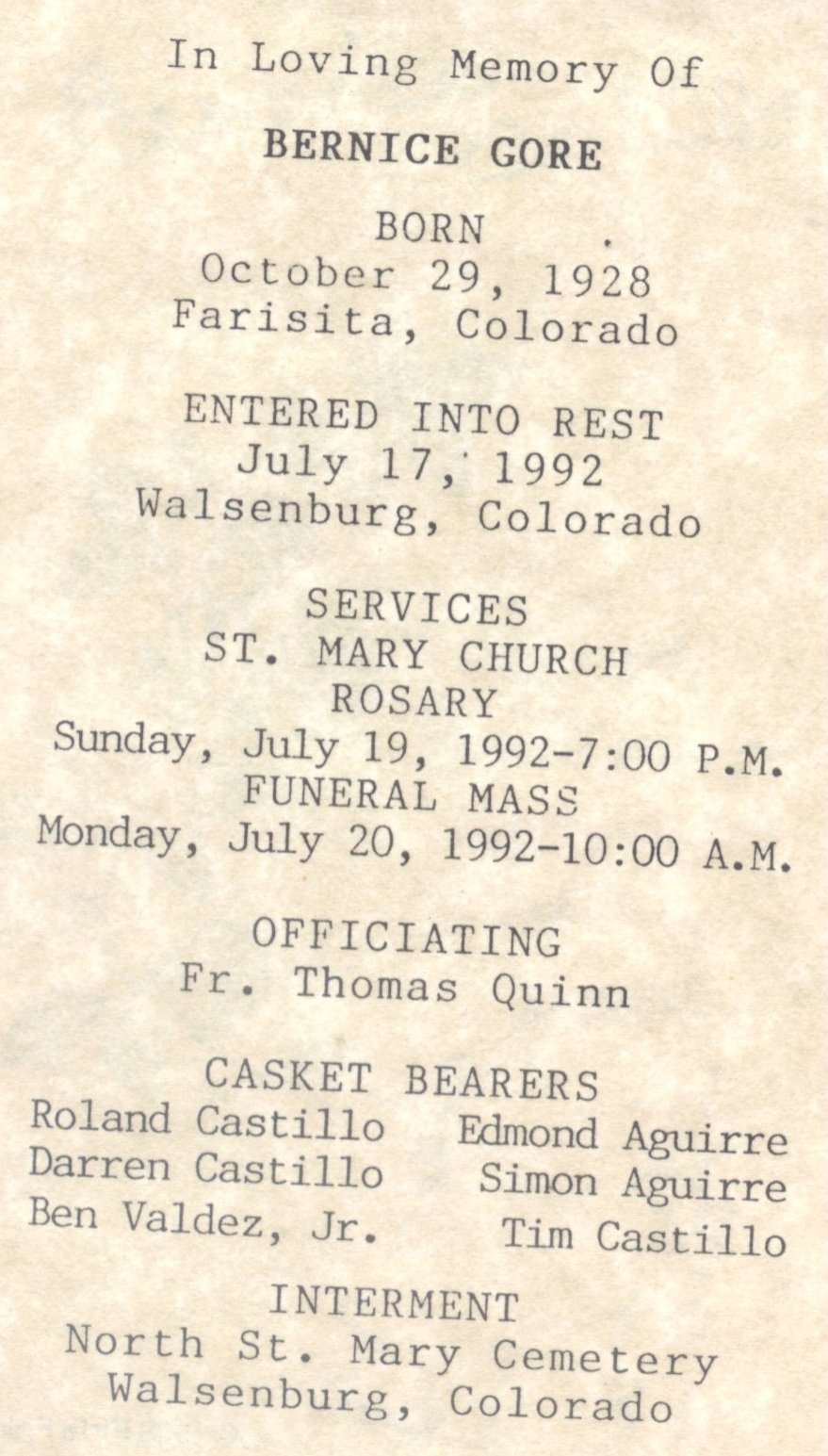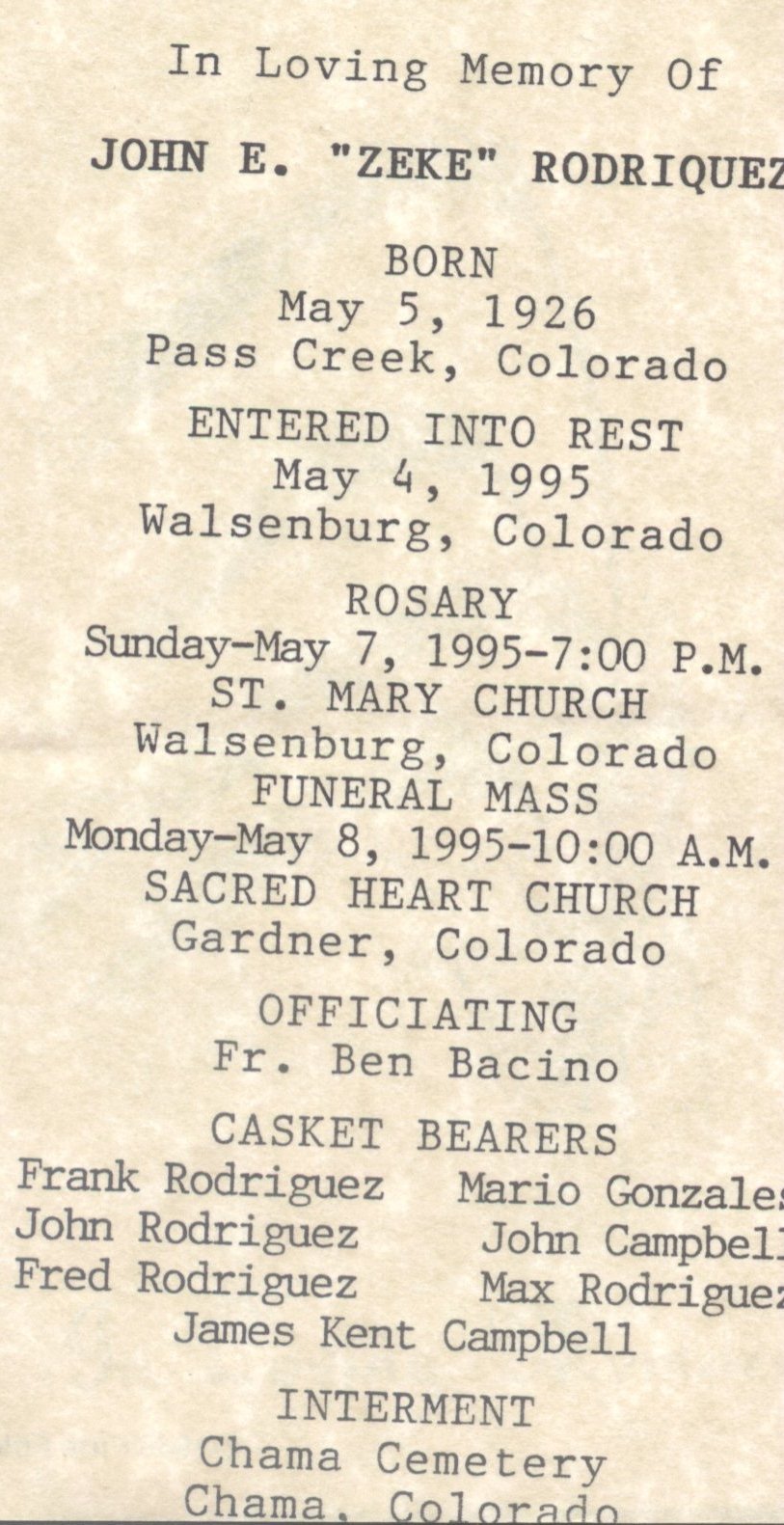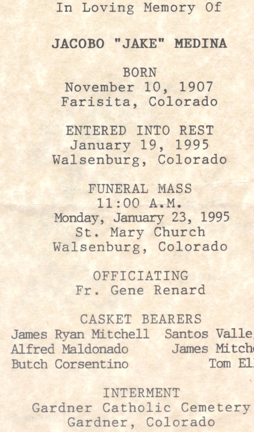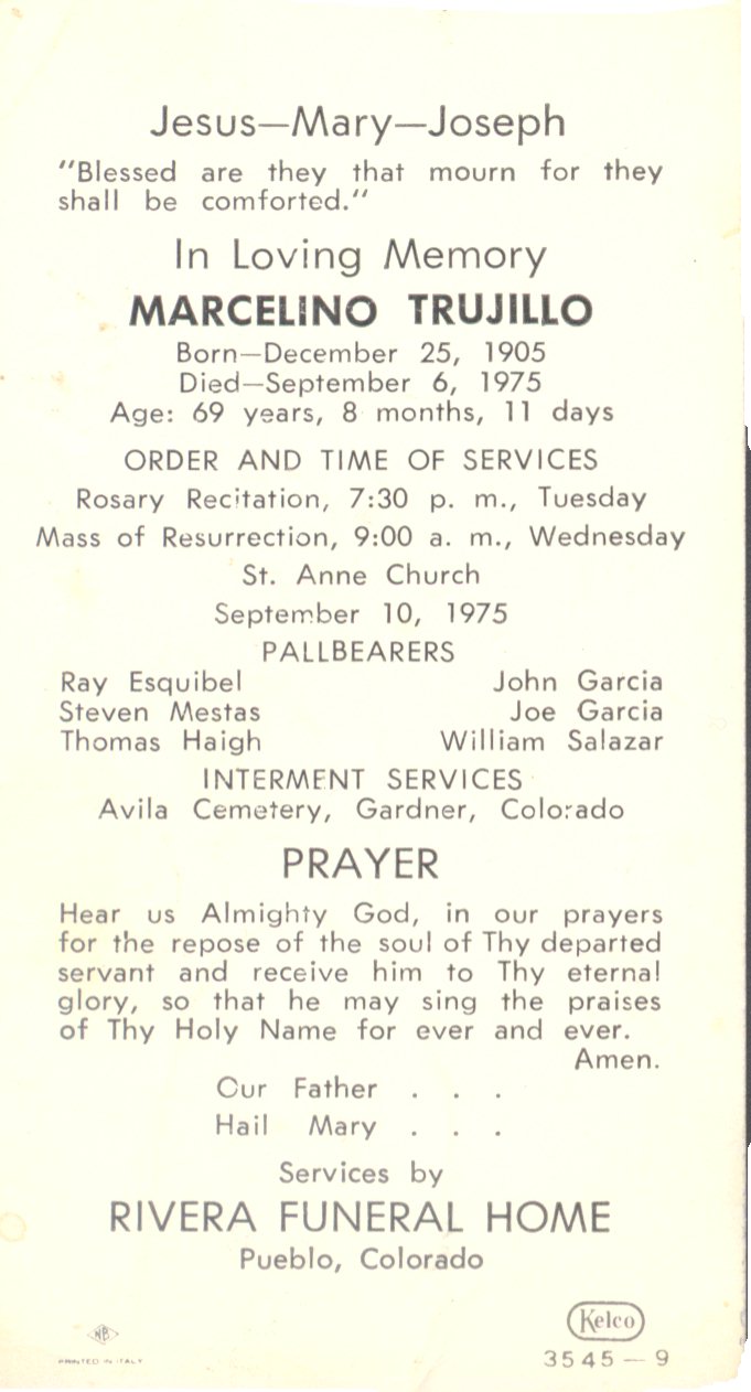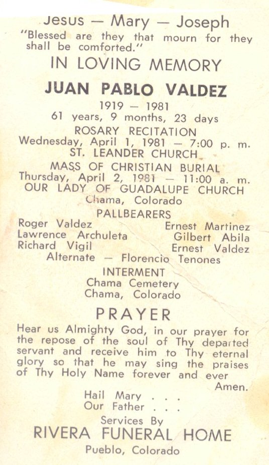 Died Sept. 28, 1981 Walsenburg, Colorado