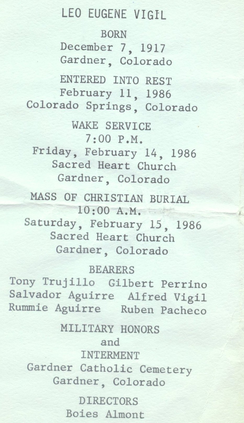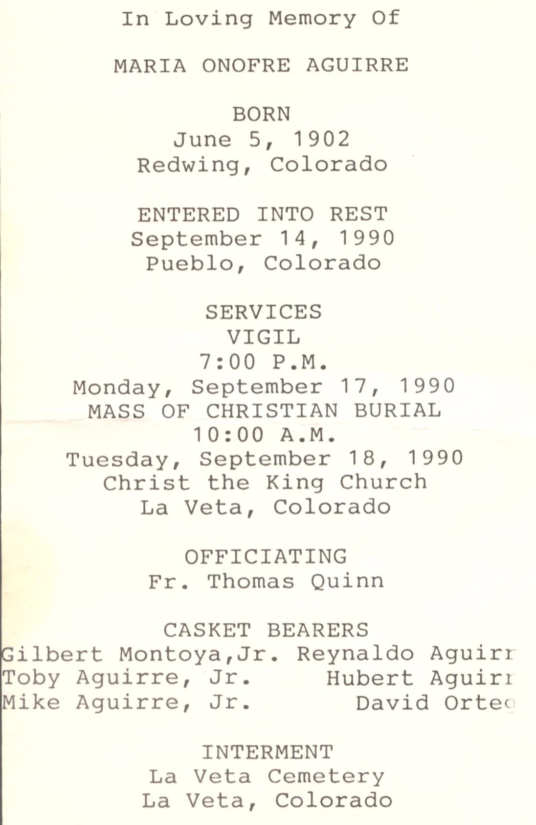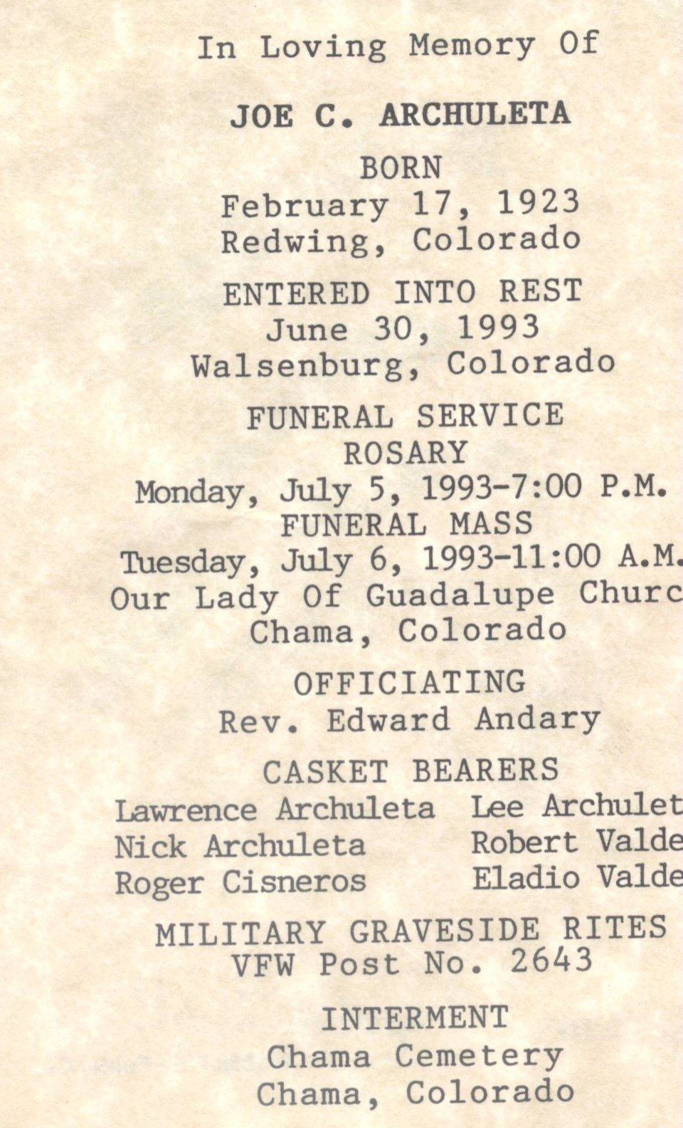 Died Sept. 28, 1981 Walsenburg, Colorado