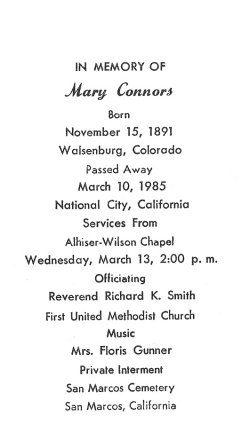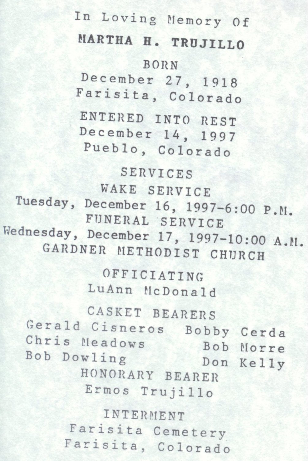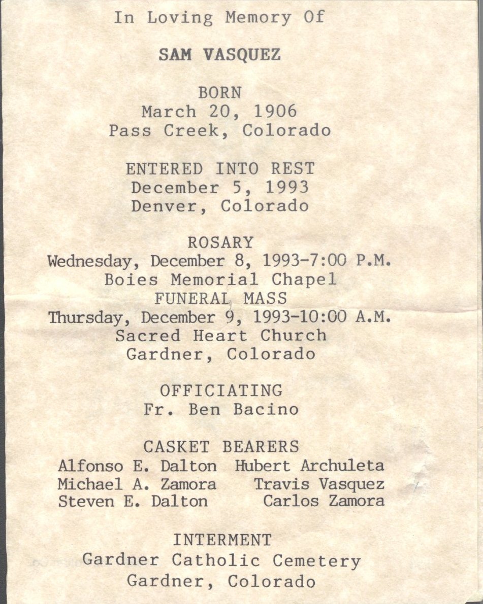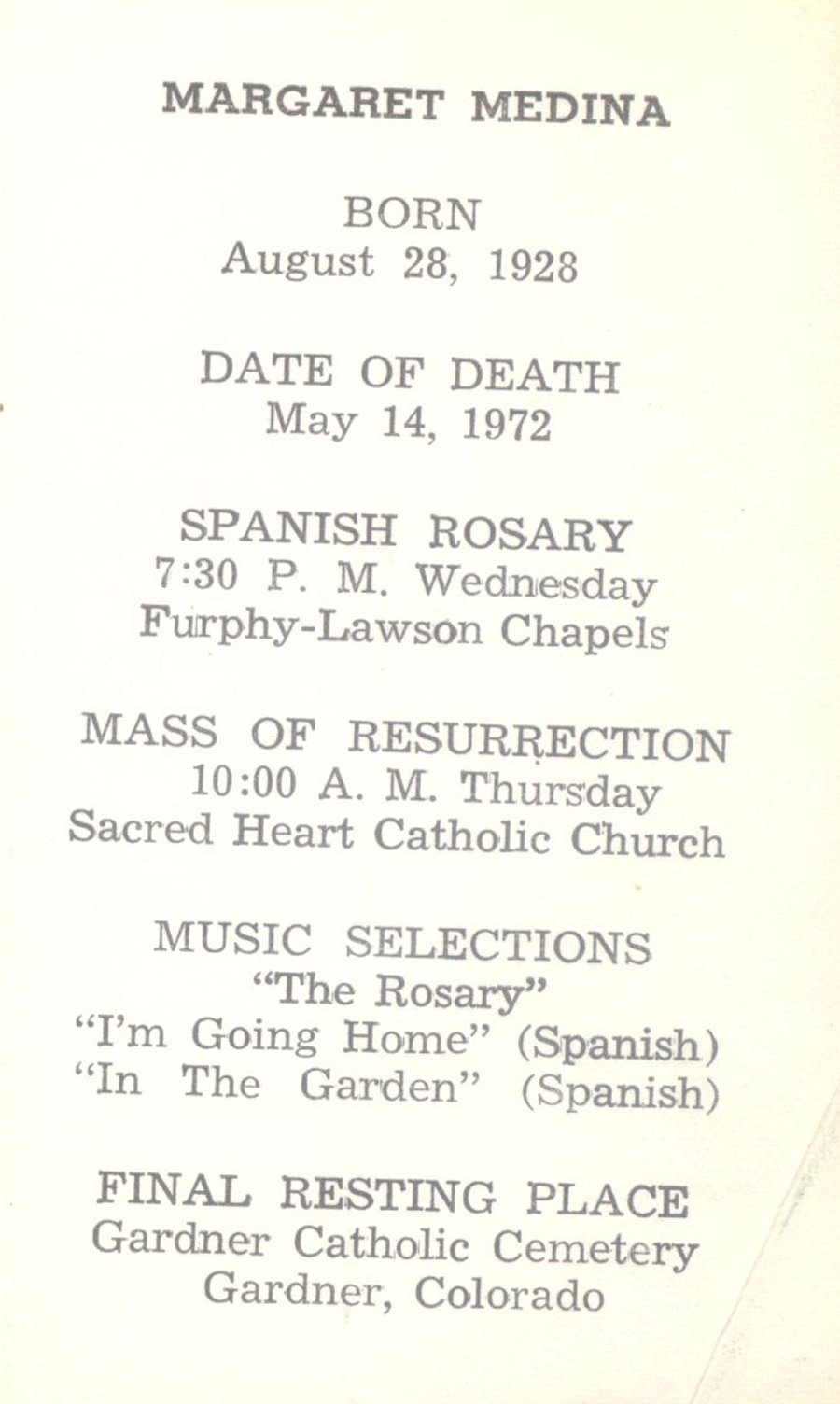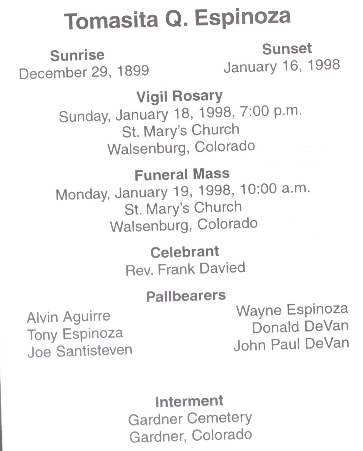 Died Sept. 28, 1981 Walsenburg, Colorado