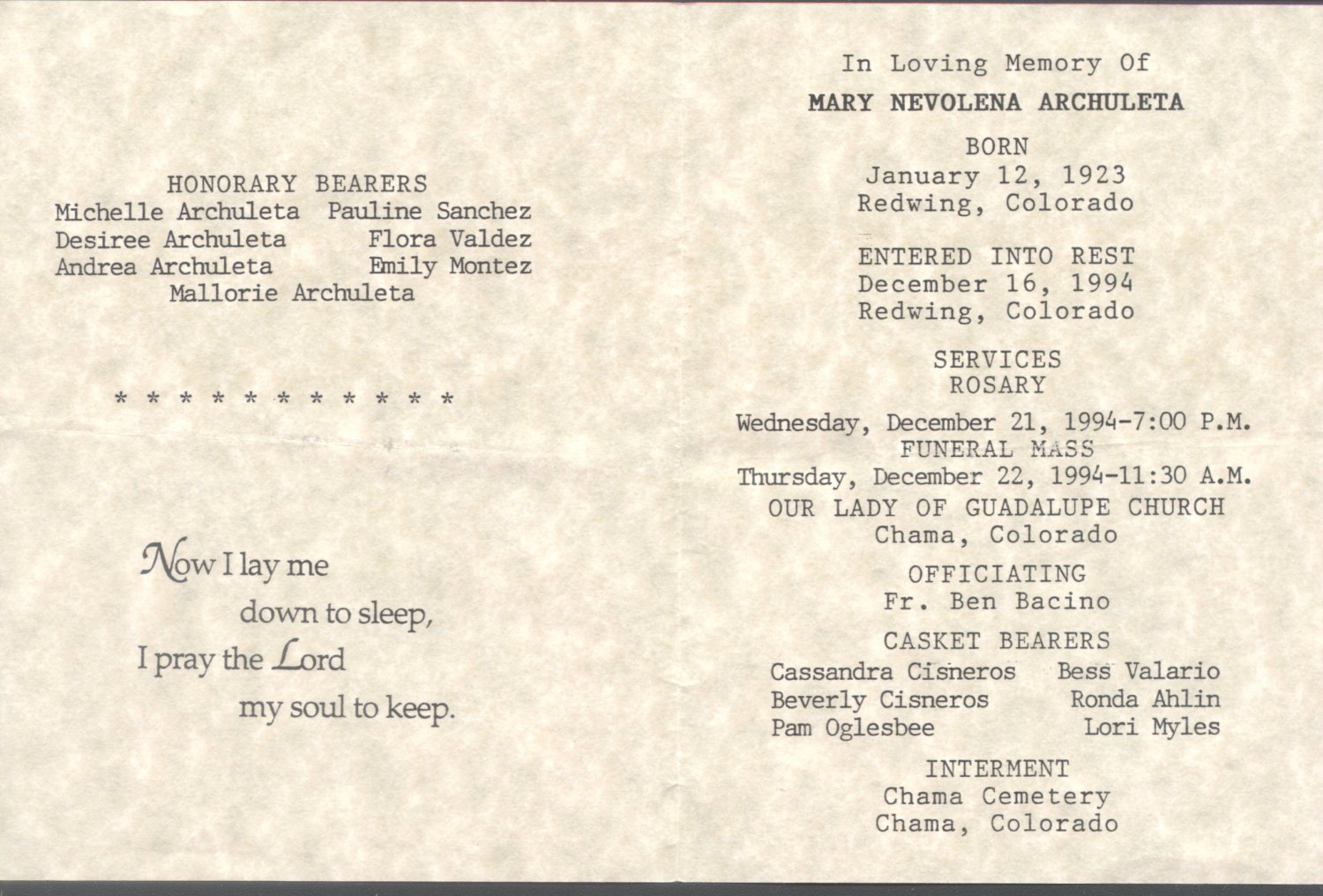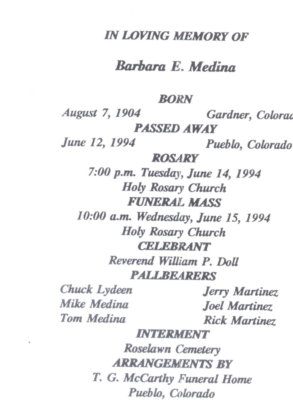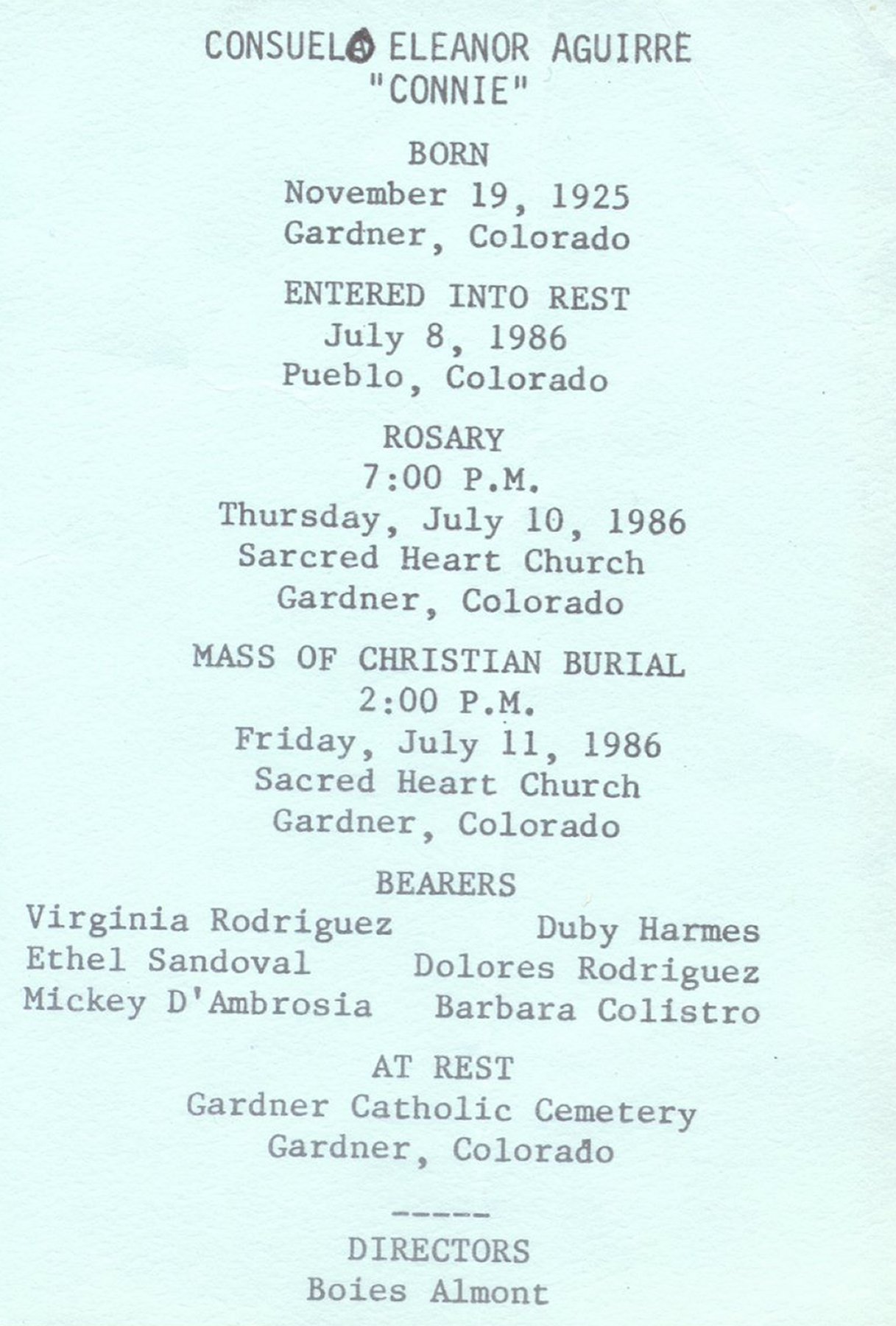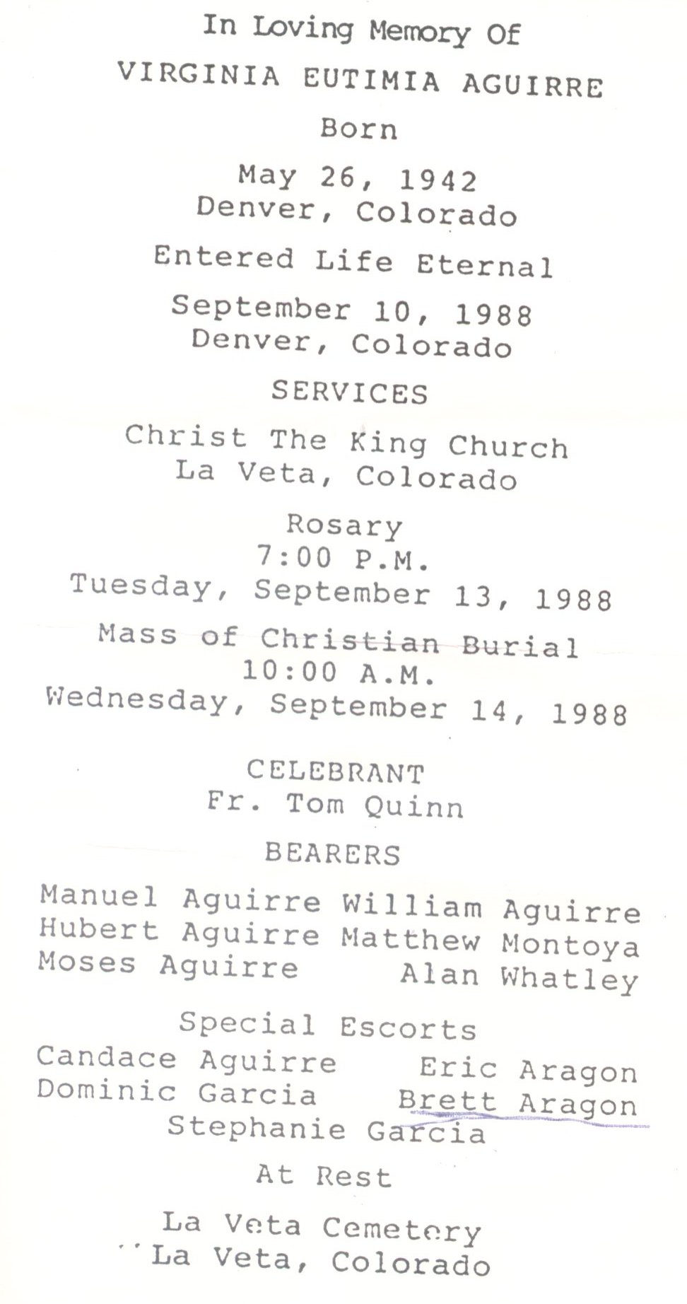 Mass of Christian Burial 11:00 am Friday Sacred Heart Catholic Church, Gardner Colorado