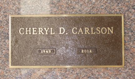 Carlson, Cheryl D. born 1949 died 2004 Notes: Chapel of Angels Mausoleum