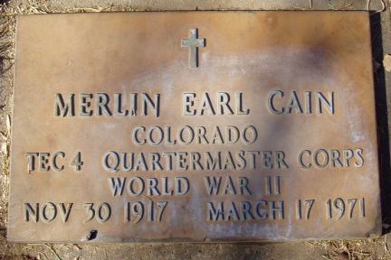 Cain, William Byron born 9/23/1919 died 8/26/1973 Notes: Colorado TSgt US Army Air Forces WWII Calvary Section
