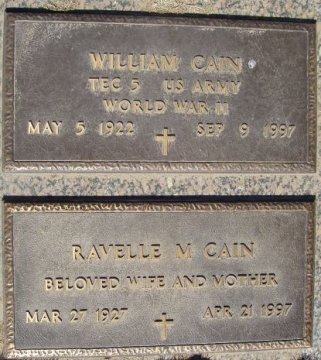 Cain, William born 5/5/1922 died 9/9/1997Notes: Tec 5 US Army WWII