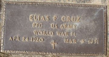 Cruz, Elias F. born 4/24/1920 died 3/3/1991Notes: PFC US Army WWII
