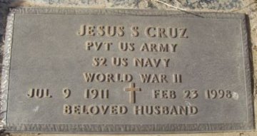 Cruz, Jesus S. born 7/9/1911 died 2/23/1998 Notes: Pvt US Army, S2 US Navy WWII Veterans Court of Honor