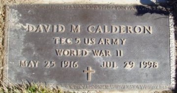 Calderon, David M. born 5/25/1916 died 7/29/1998 Notes: Tec 5 US Army WWII Veterans Court of Honor