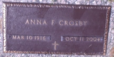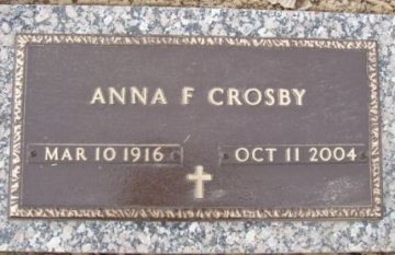 Crosby, Anna F. born 3/10/1916 died 10/11/2004 Notes: Veterans Court of Honor