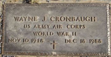 Cronbaugh, Wayne J. born 11/10/1918 died 12/18/1988 Notes: US Army Air Corps WWII Veterans Court of Honor