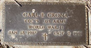 Crona, Carl E. born 1/18/1917 died 10/2/1991Notes:Tec5 US Army WWIISection B