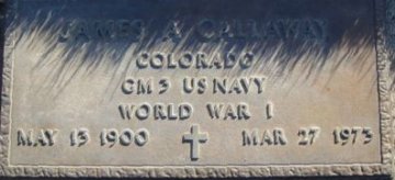 Callaway, James A. born 5/13/1900 died 3/27/1973Notes:Colorado GM3 US Navy WWI Section A