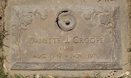 Croope, Danette Janie born 8-?-1949 died 11-?-1970 Notes: Resthaven Section