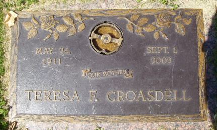 Croasdell, Teresa F. born 5/24/1911 died 9/1/2000 Notes: Calvary Section