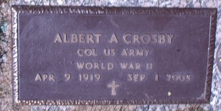 Crosby, Albert A. born 4/9/1919 died 9/1/2003 Notes: Col US Army WWII Veterans Court of Honor