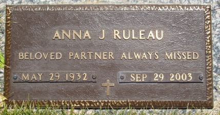 Ruleau, Anna J. born 5/29/1932 died 9/29/2003 Notes: Pieta