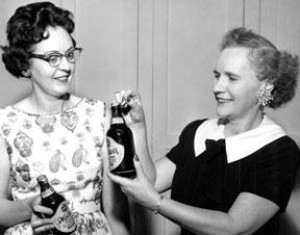 CHIEFTAIN PHOTO/FILE Mrs. James Scott (right) shows Mrs. Robert Jackson how to open the zip top on a bottle of Walter's beer in this 1964 photo. The zip top was used on Walter's bottles in the late 1930s.