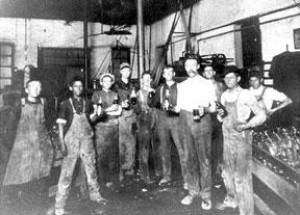 At the beginning, there were no paper labels - the name was molded into the bottles - and beer was not pasteurized. When the modern brew house was built in 1902, the bottles were washed, pressure-filled and capped and the bottled beer was then pasteurized in large wooden tanks. Labels were added by machine.